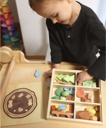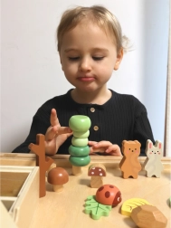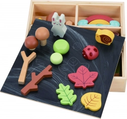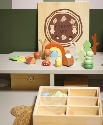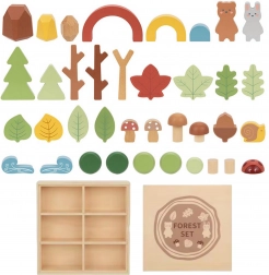 Lesna set od Tooky Toy zasnovana za ustvarjalno zabavo otrok. Vsebuje različne gozdne elemente, ki omogočajo razvrščanje, zlaganje in gradnjo, podpirajoč ustvarjanje edinstvenega gozdnega okolja.