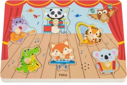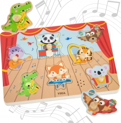 Vstopite v svet glasbe in učenja z izvirno leseno sestavljanko znamke VIGA, kjer živalski glasbeniki prebudijo domišljijo vaših otrok. Ko otroci dvignejo in ponovno namestijo košček, zaslišijo realističen zvok glasbila, kar podpira učenje skozi izkušnjo.