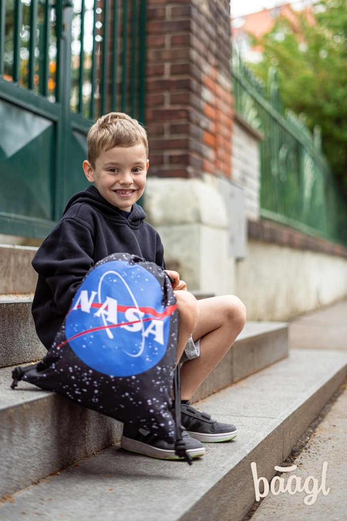 Moderna vrečka Baagl z motivom NASA je idealna za prenašanje copat ali športne obutve. Izdelana je iz trpežnega, pralnega materiala, ki je odporen in enostaven za vzdrževanje. Glavne lastnosti: