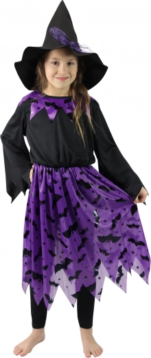 Iščete popoln kostum za vašo malo čarovnico? Ta otroški kostum čarovnice prinaša čarobnost in domišljijo v vsako igro. Kostum vključuje obleko in špičast klobuk z mašno, vse v privlačnem črno-vijoličnem dizajnu z netopirjevimi vzorci. Namenjen je deklicam velikosti M, torej v starostnem razponu 6–8 let (117–128 cm). Kostum je lahek in udoben, kar omogoča svobodo gibanja.
