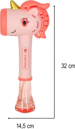 Odkrijte čarobnost mehurčkov z našim bublifukom v obliki samoroga. Ta igriv dizajn združuje otrokovo fascinacijo s čarobnimi bitji in veselje do mehurčkov. Samodejno ustvarjanje mehurčkov zagotavlja enostavno uporabo – dovolj je pritisniti gumb in opazovati, kako mehurčki napolnijo zrak.