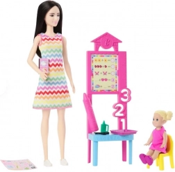 Pripravite se na zabavno učenje z moderno Barbie Učiteljico! Ta set vsebuje Barbie učiteljico s klasično učiteljsko zgodbo, vključno z malim učencem in različnimi razrednimi dodatki.