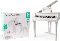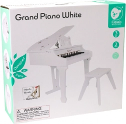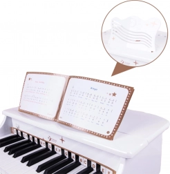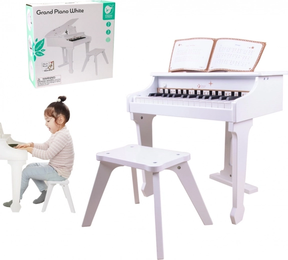 Otroški beli klavirček CLASSIC WORLD ponuja pristno izkušnjo igranja na pravi instrument v varni in igrivi obliki. Zahvaljujoč leseni konstrukciji, stabilni stolčki in notnemu stojalu bodo mali glasbeniki uživali v udobnem sedenju ter osvojili pravilne navade pri igranju. Priložena ilustrirana notna knjižica olajša prve melodije.