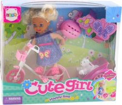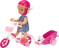 Set mini punčka s kolesom, prikolico in belim kužkom