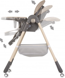 Praktičen jedilni stolček za samostojno sedeče otroke do 15 kg združuje udobje, varnost in enostavno vzdrževanje. Ponuja 4 položaje naslonjala, 7 višin sedeža, nastavljivo oporo za noge in mehke 5-točkovne pasove. Dvojni pladenj z odstranljivim zgornjim delom olajša čiščenje, medtem ko 4 kolesca in kompaktno zlaganje omogočata lahko premikanje in shranjevanje.