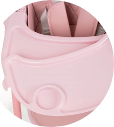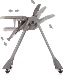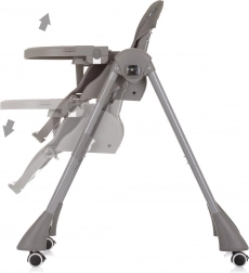 Starši bodo cenili dvojni pladenj – zgornji snemljiv za hitro čiščenje in spodnji z zaščitno T-palisado za največjo varnost. Stol zlahka prilagodite jedilni mizi z 8 stopnjami višine. Štiri kolesca zagotavljajo mobilnost v gospodinjstvu, po obroku pa ga preprosto zložite v kompaktno velikost.