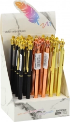Kovinsko pero ima natančno konico debeline 1,0 mm, ki zagotavlja gladko in enakomerno pisanje brez prekinitev linije. Zaradi visoke kakovosti modrega črnila so zapiski trajni, črnilo ne zbledi in se ne razmaže. Vrtljiv mehanizem olajša hitro izvleko napolnila, kovinska konstrukcija pa zagotavlja dolgo življenjsko dobo in eleganten videz za dolgo časa.