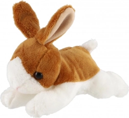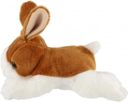 Prisrčen rjavo-bel plišasti zajček v ležečem položaju razveseli otroke od rojstva dalje. Je izjemno mehak, varen za dojenčke in se zaradi kompaktne velikosti odlično prilega malim ročicam. Idealno za crkljanje, pomiritev in domišljijsko igro.