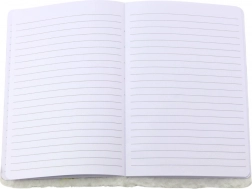 Zvezek ima črtaste strani, ki olajšajo zapisovanje vsakodnevnih zapiskov, vodenje dnevnika ali ustvarjanje skic. Zahvaljujoč meram 22 × 16 × 3 cm je priročen za prenašanje in se prilega nahrbtniku, torbici ali šolskemu peresniku. Mehka plišasta tekstura poskrbi, da je držanje zvezka v rokah pravo zadovoljstvo.