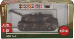 Odkrijte kakovostno izdelan tank SIKU v priljubljenem merilu 1:87. Model je izdelan iz tlačno lite kovine in trpežnih plastičnih delov, ne vsebuje PVC in ustreza mednarodnim varnostnim standardom za igrače. Zaradi natančnih detajlov in funkcionalnih elementov je idealen tako za igro kot za zbirateljsko vitrino.
