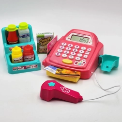 Del seta sta tudi polica z artikli, bankovci, kovanci, plačilna kartica in škatlica »piškotov«, zato si lahko otroci ustvarijo svojo mini trgovino. Igra razvija komunikacijo, fino motoriko, kreativnost in domišljijo.