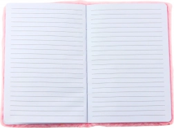 Notranjost zvezka vsebuje črtaste strani, idealne za zapisovanje zapiskov, vodenje dnevnika, pesniške navdihe ali skiciranje. Zahvaljujoč meram 22 x 16 x 3 cm je prenosljiv in se zlahka prilega nahrbtniku, torbi ali peresnici. Njegova mehka, plišasta tekstura nudi izjemen užitek ob vsakem dotiku!