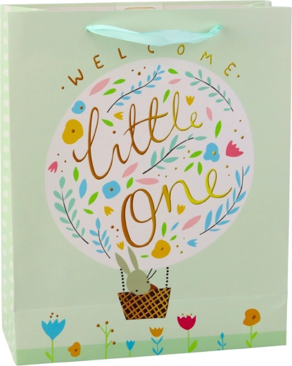 Darilno vrečko Welcome Little One sestavlja visokokakovosten okrasni karton, ki zagotavlja vzdržljivost in estetski videz. Satenasta ročaja v mint barvi dodajata eleganco in udobje pri nošenju. Vrečka z merami 32 x 26 x 12 cm je idealna za pakiranje manjših in srednje velikih daril, kot so oblačila, igrače ali kozmetika za dojenčka.