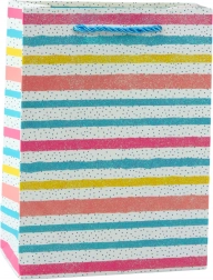Barvita darilna vrečka je idealen način, da darilo zavijete stilsko in veselo. Njen igriv in barvit dizajn prinaša sodoben in energičen značaj, zato je popolna za rojstne dni, zabave in druge priložnosti.
