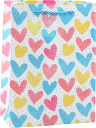 Barvita darilna vrečka srčki, zvezdice, pikice, črte