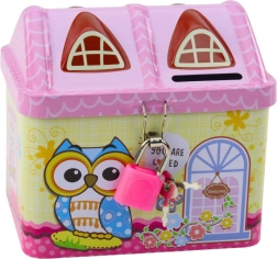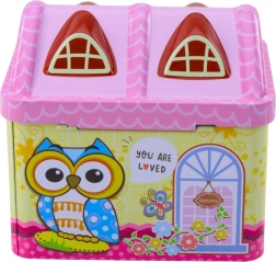 Hranilnica v obliki hiške z motivom sove v pastelnih barvah bo očarala vsakega otroka.
