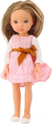 Punčka izžareva eleganco zahvaljujoč svoji rožnati obleki z belimi črtami, ustvarjeni za male modne navdušenke.