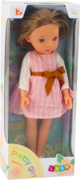 Punčka Pretty Girl je vrhunec vsake zbirke za deklice zaradi svojega lepo oblikovanega obraza z nežnim nasmehom in velikimi očmi. Ima mehke in na dotik prijetne lase, ki jih je mogoče česati in oblikovati. Oblečena je v rožnato obleko z belimi črtami, dopolnjeno z belimi rokavi in okrašeno rjavo mašno v pasu. To elegantno kombinacijo dopolnjujejo klasični beli čevlji. Obleko je mogoče sleči, kar omogoča igro preoblačenja in ustvarjanje lastnih modnih kreacij.