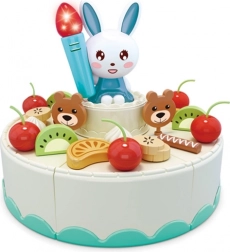 Ustvarite svojo slaščičarno in pripravite nepozabno zabavo! Velik WOOPIE set ponuja vse, kar mali gostitelji potrebujejo: torto in pito za rezanje, krožničke, pribor, pijače in škatlico za preostalo torto. Za vzdušje poskrbi svečka z zajčkom, ki sveti, igra in se po pihanju samodejno ugasne.
