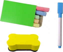 - Klasična črna površina za pisanje in risanje s kredami v več barvah, ki jo je mogoče z lahkoto obrisati z gobico.