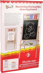 Lesena dvostranska tabla je idealna izobraževalna igrača za otroke od 3. leta dalje. Stabilna konstrukcija na nogah zagotavlja varno igro. Kombinacija dveh površin, ene kredne in druge magnetne, ponuja številne možnosti igre: