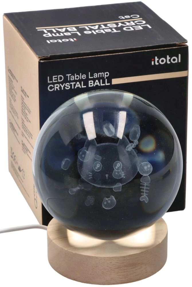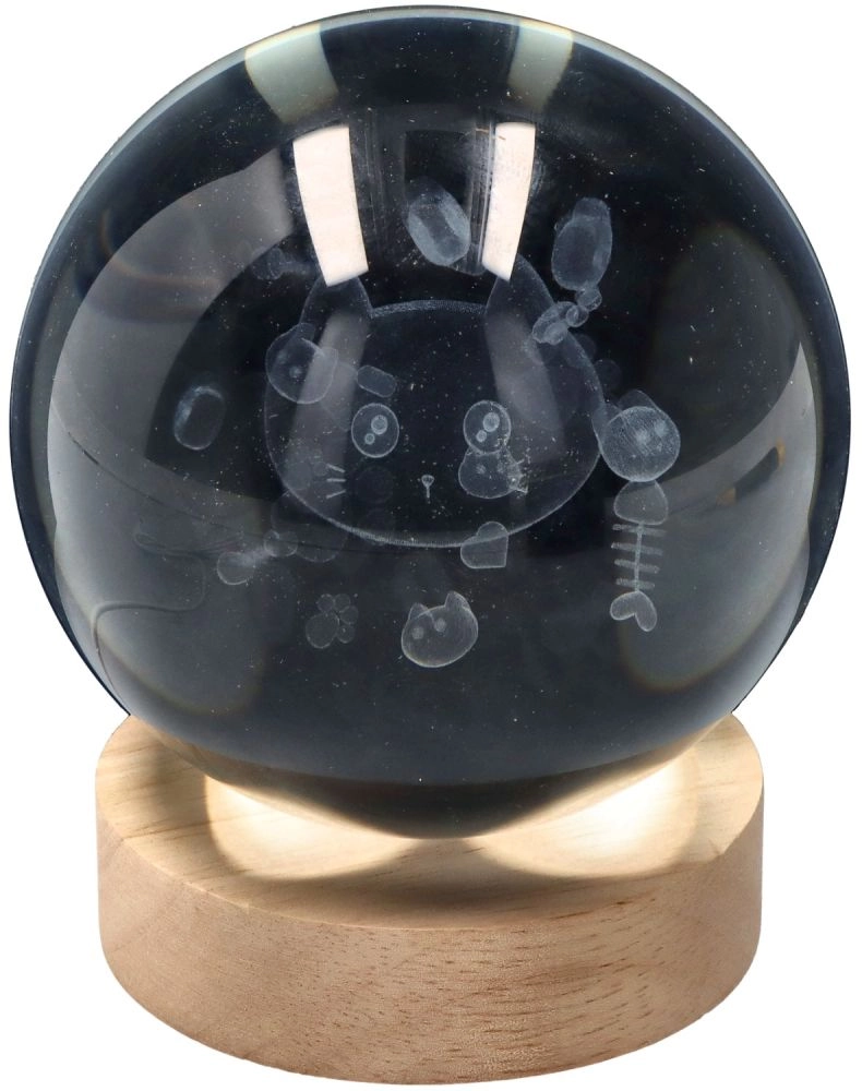 Stilska kristalna svetilka v obliki krogle z motivom mačke in kompaktnim premerom 6 cm vnese v vaš interier edinstveno atmosfero. Zaradi varčnega izkoristka 1,5 W je idealna kot nočna lučka ali dekorativni dodatek za dnevno sobo, spalnico ali otroško sobo. Certifikat CE zagotavlja varnost in kakovost izdelave.