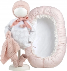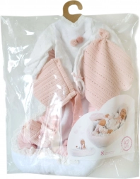 Oblačila za punčko dojenčka velikosti 40–42 cm so del 4-delnega seta, ki vključuje tri kose oblačil, okrasno krpico in gnezdece. Ročno izdelano v Španiji in namenjeno otrokom od 3 let.
