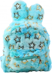 Nahrbtnik je izdelan iz mehkega pliša, v katerega so všite bleščeče zlate in črne zvezdice. Ušeska na vrhu dodajo pravljičen videz, celoten videz pa je v pastelnih barvah, prijetnih za otroke. Nahrbtnik ima en glavni žep z zadrgo in manjši sprednji žep – idealno za drobnarije.