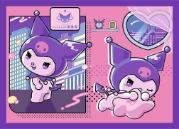Komplet sestavljank 4v1 s priljubljenimi liki iz sveta HELLO KITTY, natančneje KUROMI, otrokom prinaša pisano in kreativno zabavo. Vsako pakiranje vsebuje štiri samostojne slike z različno številom koščkov, zato je primerno za mlajše in nekoliko starejše otroke ter raste skupaj z njihovimi spretnostmi.