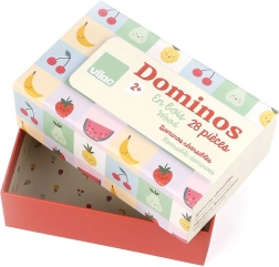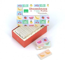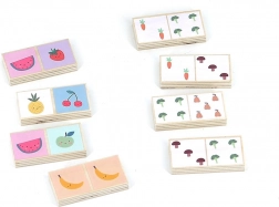 To lepo ilustrirano domino Sarah Betz je ne samo zabavno, temveč tudi poučno. Otroci se učijo prepoznavati in povezovati enake vrste sadja in zelenjave.