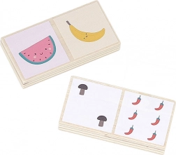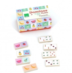 Leseno domino z motivi sadja in zelenjave je odlična igra za otroke, ki ne le zabavno spodbuja spomin in opazovanje, temveč tudi razvija fino motoriko in koordinacijo oko-roka.