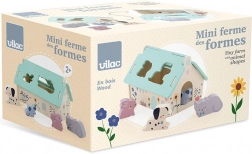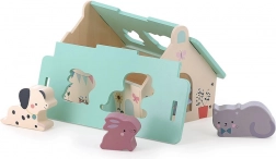Ta lepo izdelana lesena hišica v nežnih barvah je zasnovana po ideji Sarah Betz in ima snemljivo streho z oblikovanimi odprtinami za vstavljanje živalic. Gre za zgodnjo igračo, navdihnjeno z Montessori, ki otroke motivira k razvoju številnih veščin: