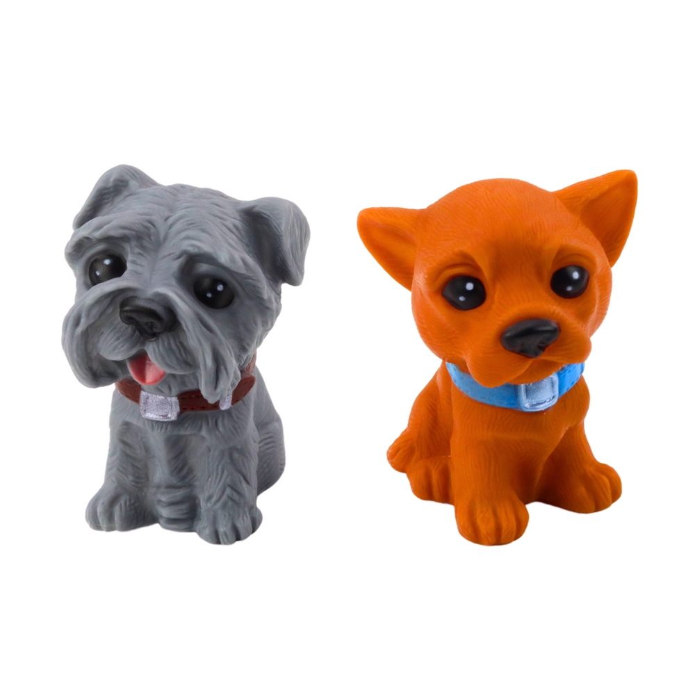 Set prikupnih figuric kužkov je odličen za vse, ki si želijo svojo malo pasjo četico. Vsak kužek v setu je edinstven, razlikuje se po barvi, izrazu smrčka in ovratnici, kar spodbuja radovednost in razvija otrokovo vizualno zaznavanje.