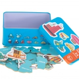 Sestavljanke so praktične za shranjevanje in prenos zahvaljujoč kovinski škatli, kar je idealno za potovanja. Ta izdelek ni le zabaven, temveč tudi poučen in spodbuja razvoj otrok.