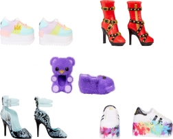 Izrazite svoj slog z novo zbirko luksuznih čevljev Rainbow High. Ustvarjajte osupljive oprave s 27 različnimi pari čevljev v vsakem pakiranju!