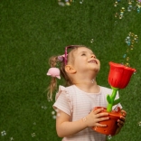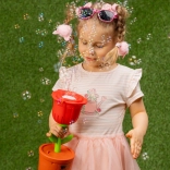 Prisrčen izdelovalnik mehurčkov v obliki vrtnice otrokom prinaša neskončno zabavo na vrtu in doma. V hipu ustvari oblake drobnih mehurčkov, integrirana LED dioda pa jim zlasti zvečer doda pravljičen videz. V paketu sta priloženi dve steklenički po 40 ml. Hitro ustvarjanje mehurčkov, čaroben LED učinek, enostavna uporaba in privlačen cvetlični dizajn za male ljubitelje mehurčkov.