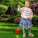Barvit dizajn vrtnice s praktičnim lončkom se prilega otroškim rokam in je stabilen pri igri na prostem in doma.