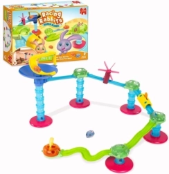 Zgradite tobogan iz kompleta Speed in naj zajčki tekajo! Postavite enega od dveh prikupnih zajčkov na vrh lijaka in pozorno opazujte, kako se spušča navzdol!