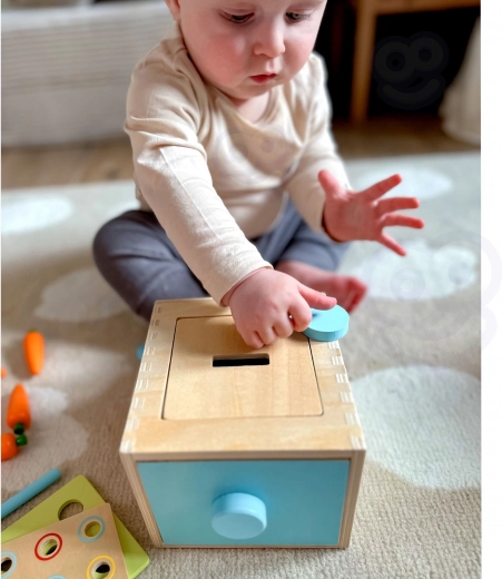 Lesena škatlica s predalčkom znamke Woopie je odlična igrača, namenjena otrokom od 12 mesecev, ki združuje zabavo z učenjem. Igrača ponuja edinstveno pustolovščino z različnimi stopnjami težavnosti, ki razvijajo otrokove spretnosti.
