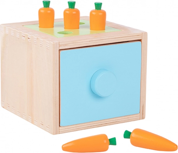 - Stopnja 3: Pobiranje korenčkov – otroci se zabavajo s sajenjem in pobiranjem lesenih korenčkov, kar razvija ročne spretnosti.