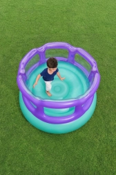 Napihljiv trampolin Bestway je idealna izbira za otroško zabavo. Namenjen za največ 2 otroka od 3 let, ta barvit, okrogel napihljiv trampolin zagotavlja ure veselja. S vijoličnimi, napihljivimi stenami, ki povečujejo varnost, je skakanje čista radost.