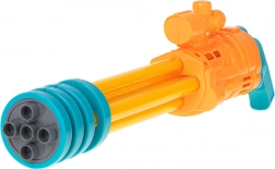 Izdelana iz kakovostne plastike, ta pištola je lahka, vendar vzdržljiva. Svetle barve, kot so rumena, oranžna in modra, bodo privlačile pogled vsakega otroka.