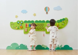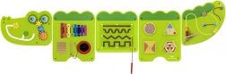 Ta velika stenska aktivna tabla v podobi veselega krokodila je razdeljena na več panelov, ki otroke spodbujajo k raziskovanju. Barviti elementi prebujajo radovednost, razvijajo čute in podpirajo samostojno igro. Trdna lesena konstrukcija z gladkimi robovi je varna in vzdržljiva za vsakodnevno uporabo.