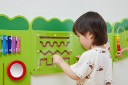 Vsak panel ponuja drugačno aktivnost – od igranja na ksilofon, prek vrtenja zobatih koles in diskov z vzorci, do vodenja kroglic in premikanja delčkov v labirintih. Otroci pri tem naravno urijo koordinacijo, prijem, potrpežljivost in reševanje problemov. Stenska montaža prihrani prostor in omogoča sočasno igro več otrok.