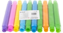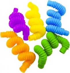 Ta set 10 senzoričnih cevk je zasnovan za zagotavljanje taktilne in slušne stimulacije. Cevke, na voljo v 7 različnih barvah - rumena, roza, vijolična, oranžna, modra, mornarsko modra in zelena, so idealne za izobraževalne igre kot so učenje črk, štetje in drugo. Njihova sposobnost povezovanja omogoča ustvarjanje različnih oblik kot so krogi in kvadrati, kar spodbuja otroško kreativnost in zagotavlja ure zabave. Za odrasle služijo kot odlično orodje za sproščanje stresa.