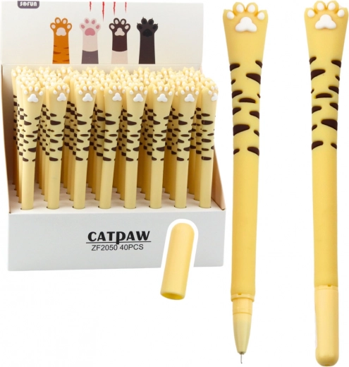 Gel pero z mačjo tačko v rumeni različici z rjavimi črtami je idealna kombinacija udobja in zabavnega dizajna. Njegovo prožno ohišje iz mehke gume omogoča prijetno uporabo, prisrčna tačka z izboklinami pa prinaša dekorativen element. Nežne črte v tigrovem slogu naredijo pero izjemno med klasičnimi pisarniškimi pripomočki.