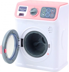 Otroški pralni stroj se zažene s pomočjo gumba ON/OFF na dotikarnem panelu. Izberite enega izmed razpoložljivih programov in pralni stroj bo začel delovati - slišali boste zvok nalivanja vode in boben se bo začel vrteti, kot da gre za pravi pralni stroj. Dodatna atrakcija je odprt sprednji boben in izvlečen predal za prašek za še bolj realistično igro.
