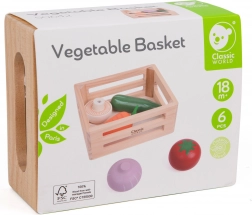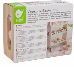Lesena košara z zelenjavo znamke Classic World otrokom ponuja neskončne možnosti ustvarjalne igre v kuhinji ali trgovini. Leseni elementi, ki predstavljajo različne vrste zelenjave, spodbujajo domišljijo in družbene veščine otrok.