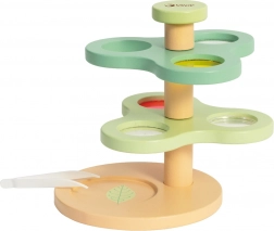 - Igrača je izdelana iz lakiranega lesa in pobarvana z netoksičnimi barvami, kar zagotavlja varnost za otroke.