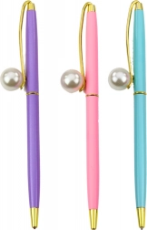 To elegantno kovinsko pero je opremljeno z vrtljivim mehanizmom, ki olajša izteg polnila in zagotavlja udobje pri pisanju. Modro črnilo z debelino črte 1 mm je idealno za zapiske in podpise. Zahvaljujoč ergonomični obliki in lahki zasnovi je pisanje prijetno tudi pri daljši uporabi.